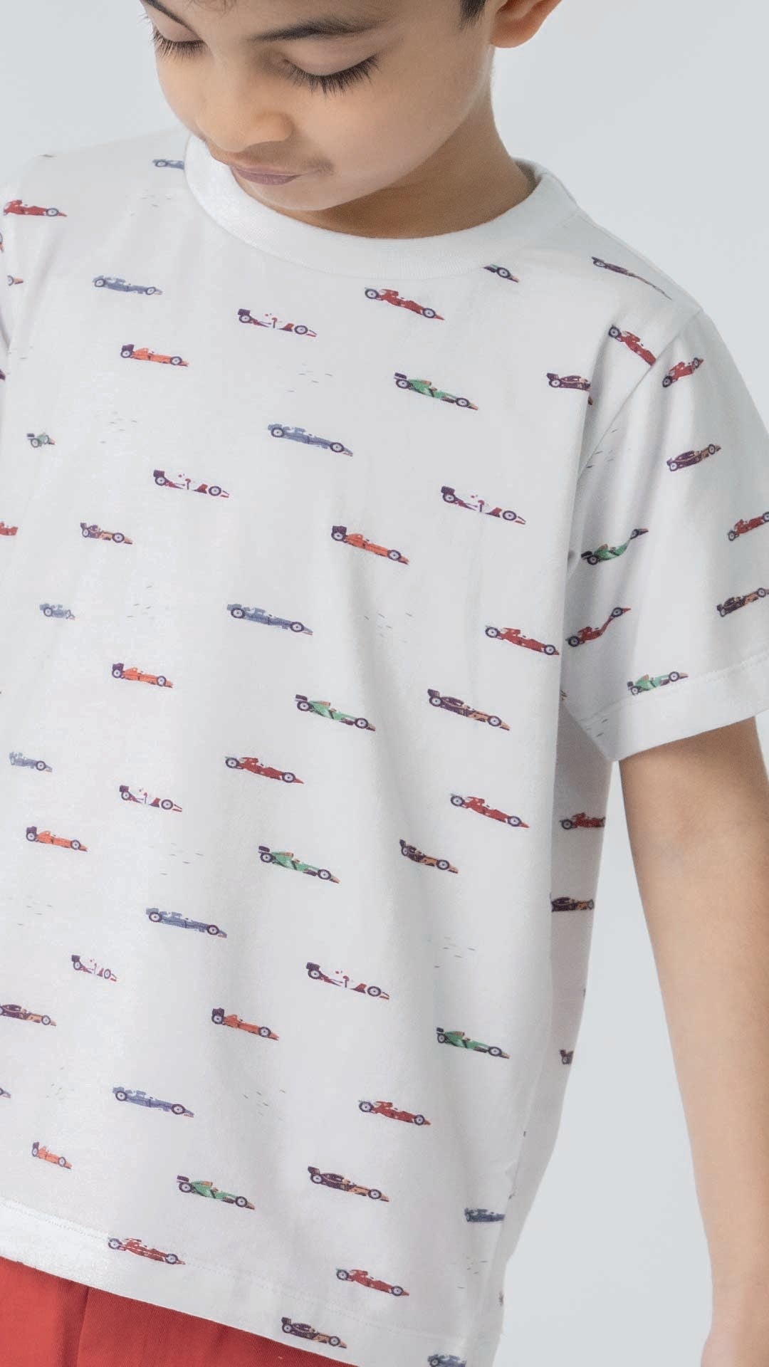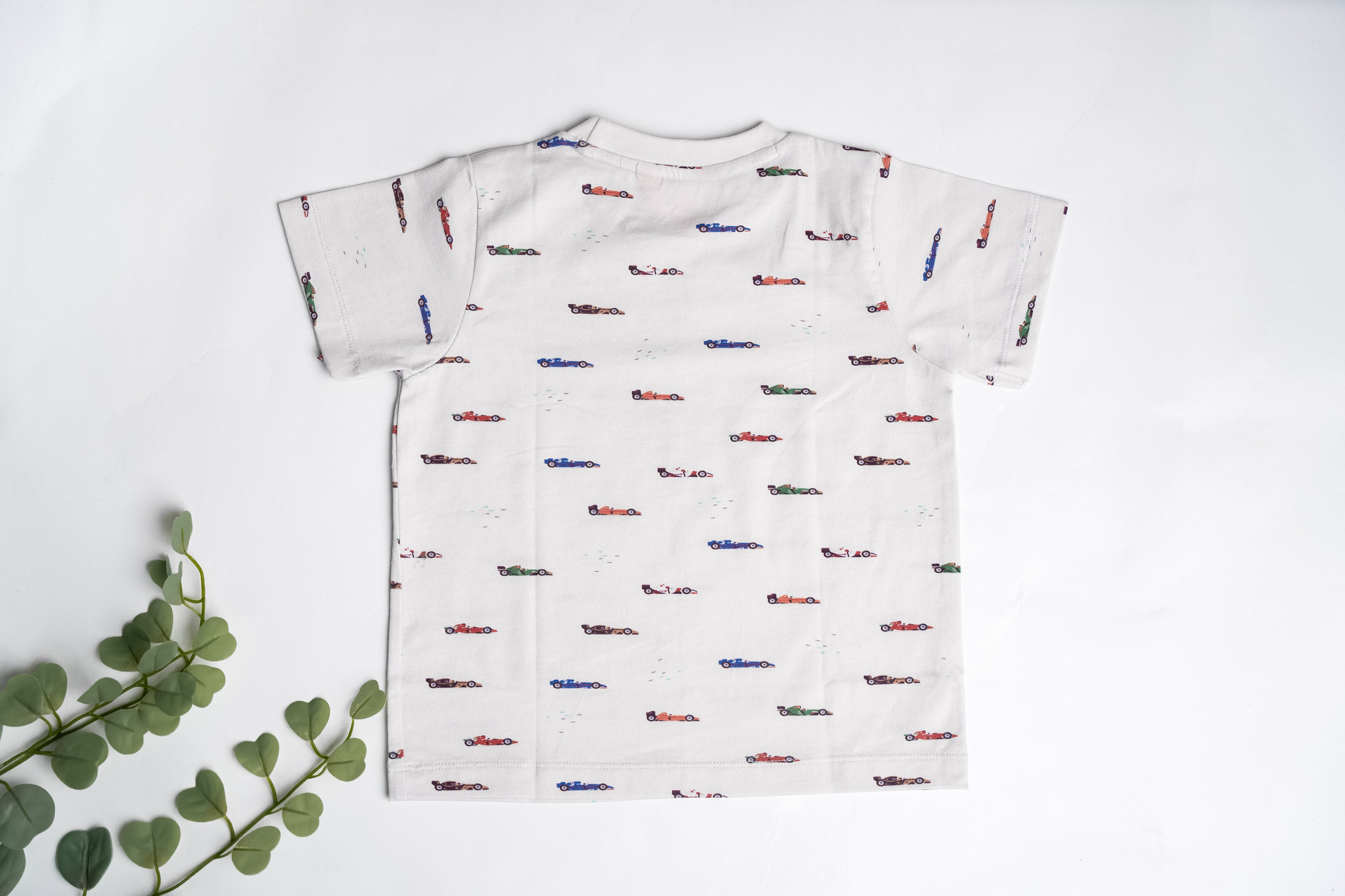 Our Race Car T- Shirt , designed for young speed enthusiasts. Made from soft, breathable cotton, this shirt features a vibrantrace car print , offering both comfort and style for your little racer.